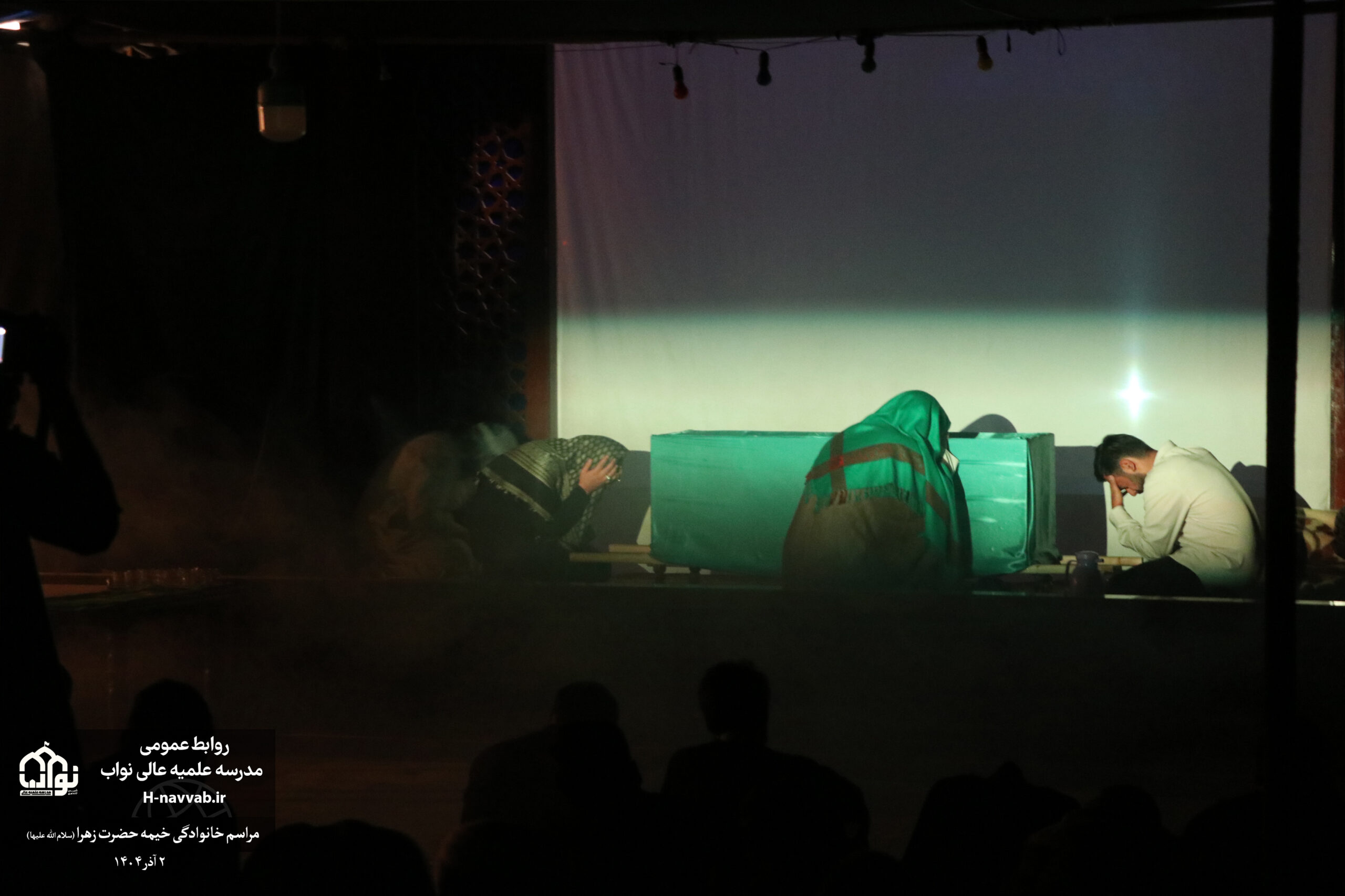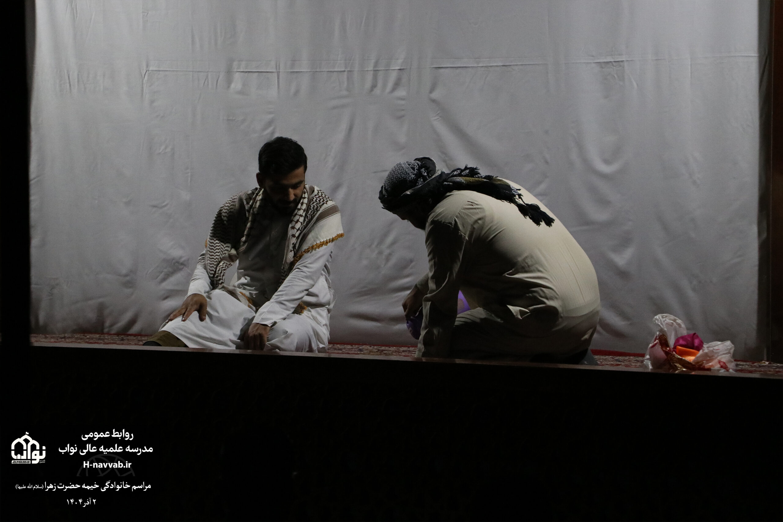 در این مراسم، حجت الاسلام و المسلمین صاحبقرانی، مدیر کل تبلیغات اسلامی خراسان رضوی به ایراد سخنرانی و پس از آن نیز گروه نمایشی طلاب مدرسه، به طور ویژه به اجرای نمایش فاطمی «آینه» پرداخت.